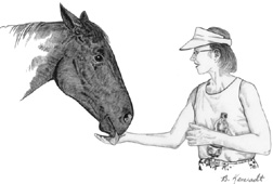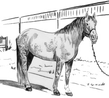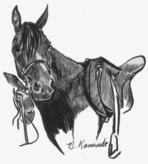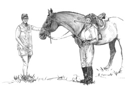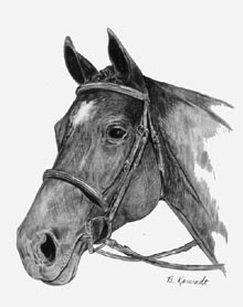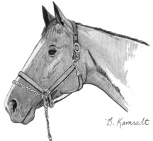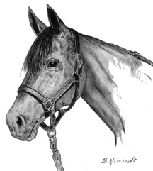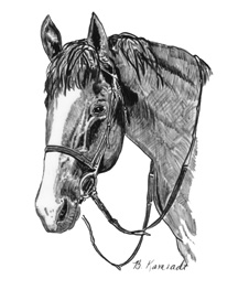 | If you have a special halter or bridle, I encourage you to use it in the photo you send. I will pay careful attention to your special tack. From experience, side photographs turn out better than head-on portraits for horses. Full figure portraits include the entire horse and some orienting aspects of the background. | ||